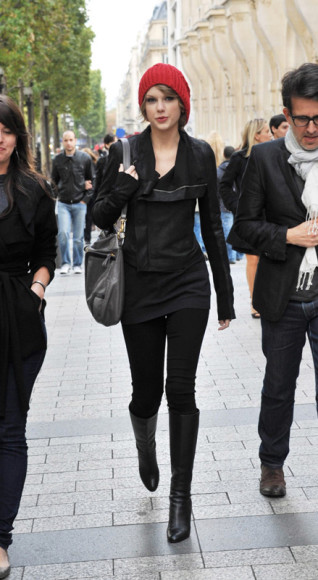 Cream furry coat, plaid pants, boots and a knit beanie at the Ethel premiere